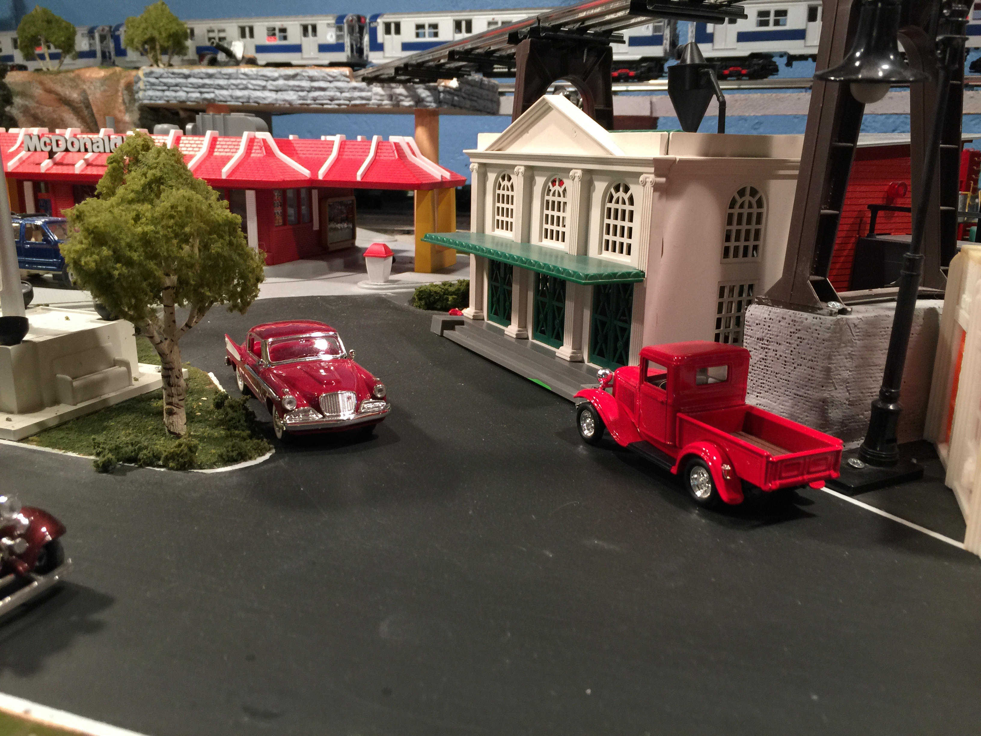 It was an internal struggle, to add the 1968 Camaro and the 1969 Firebird to my layout. My intention was to keep the time period to the 1940'2 and 1950's. However, these are one of my favorite cars of the 1960's and could not resist in adding them to the layout. In addition, it helped bridge a couple of "out of time period" items, such as the EE subway (ran in NY in the 1960's) and my 1970's era McDonalds. Both are great pieces that I had to have on my layout and will explain more in another section on this site.